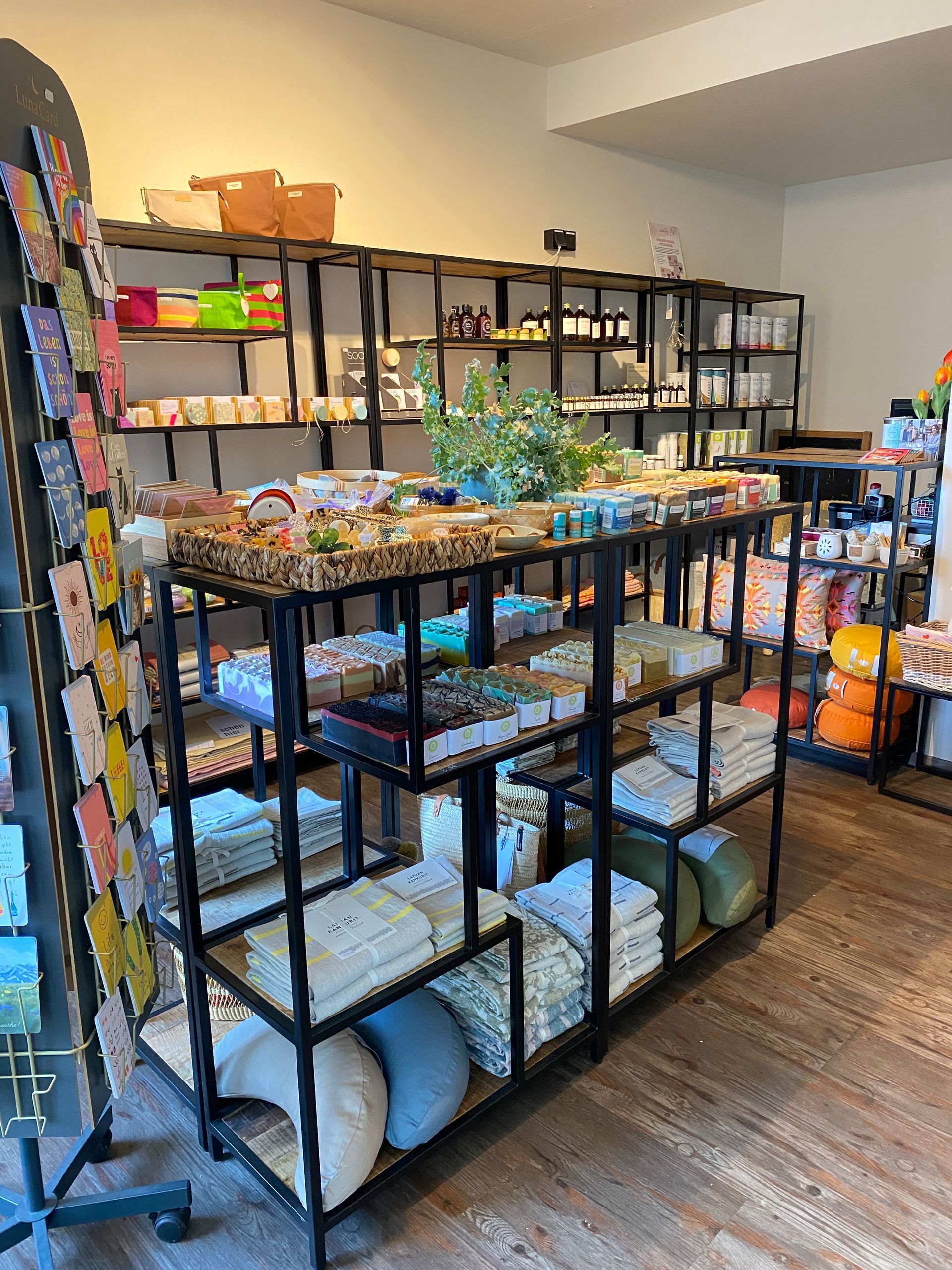 Das Thema Wohlfühlen steht im Fokus meines Ladens. Deshalb befinden sich viele Produkte im Sortiment, die Sinn machen, nachhaltig sind und auch noch schön.